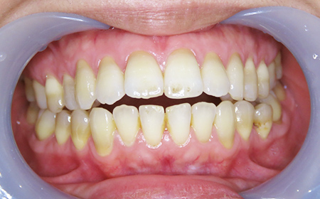 「歯のがたつきとねじれが気になる」でインビザライン矯正を開始しました。痛みもなく、順調にすすみ、「がたつきとねじれ」も次第に解消してきて喜んでおられました。